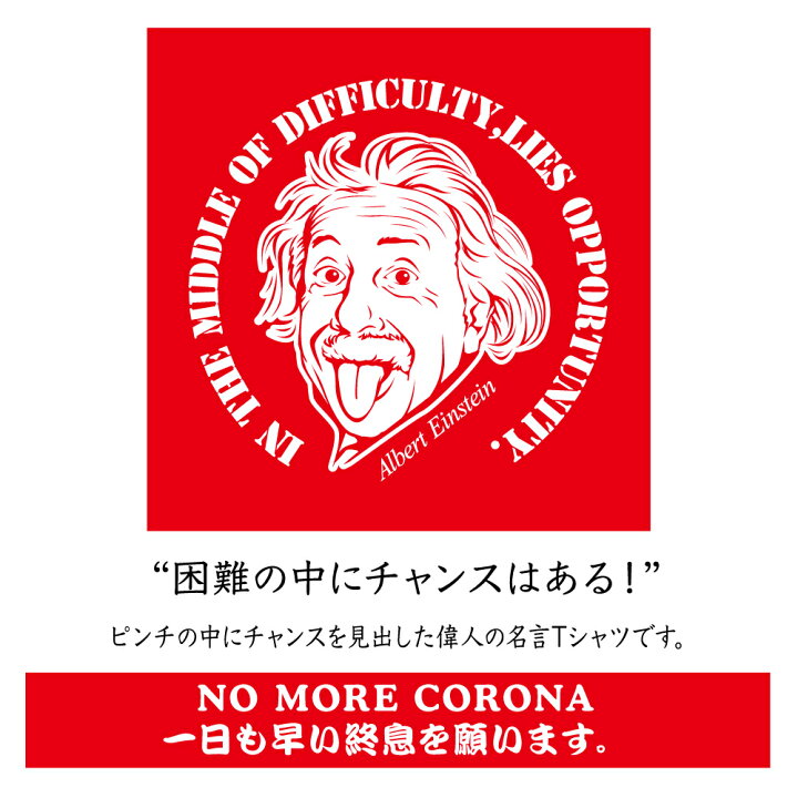 楽天市場 困難の中にチャンスはある 偉人名言 Tシャツ Corona コロナ Withコロナ 疫病退散 面白 おもしろ おもしろい ユニーク パロディ おもしろtシャツ パロディtシャツ オリジナルプリント オリジナル プリント メンズ レディース キッズ 綿100 綿 大きめ